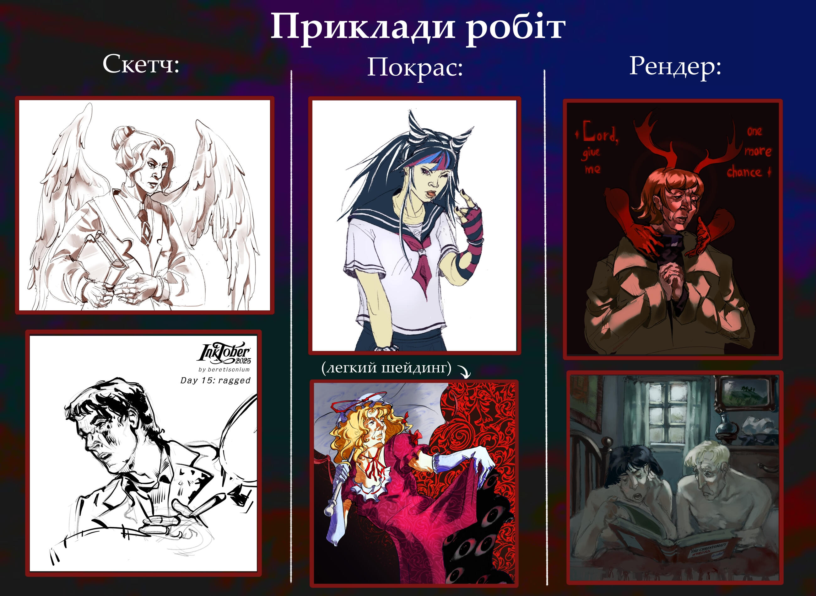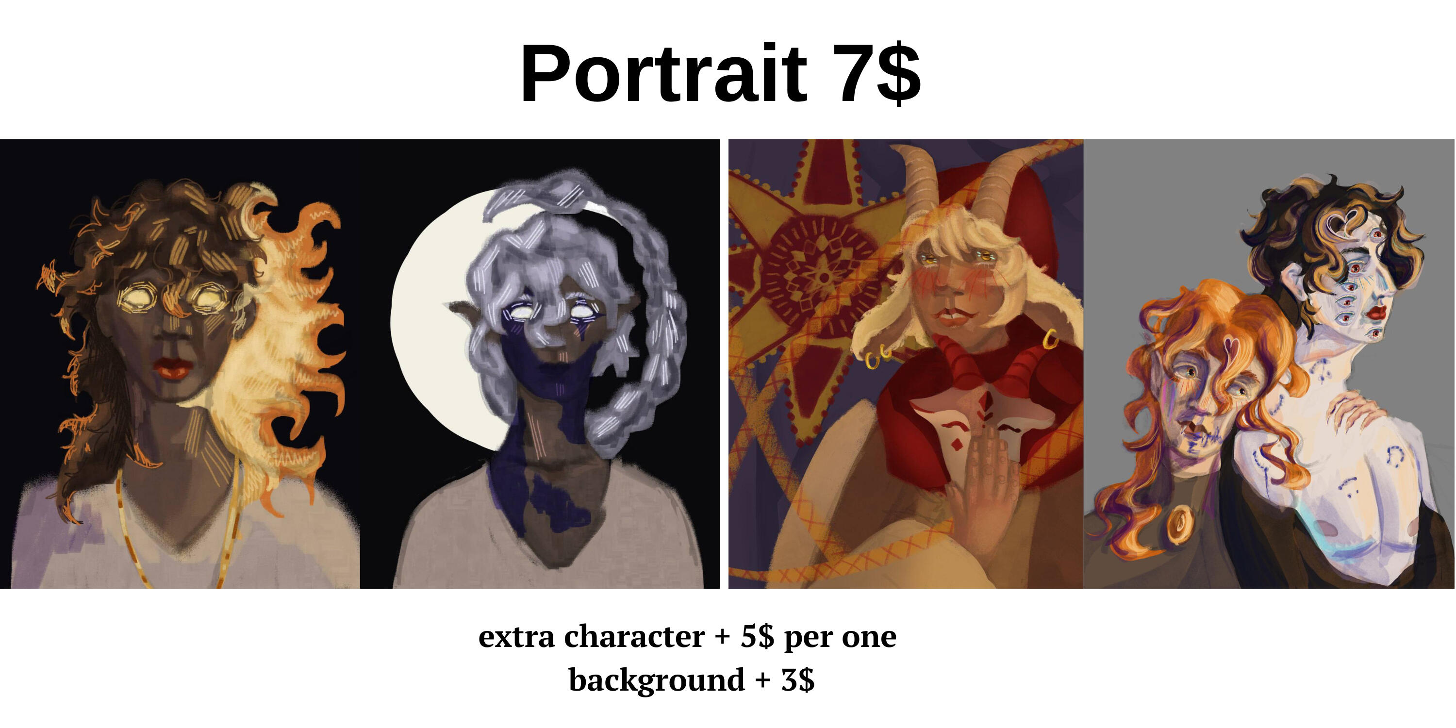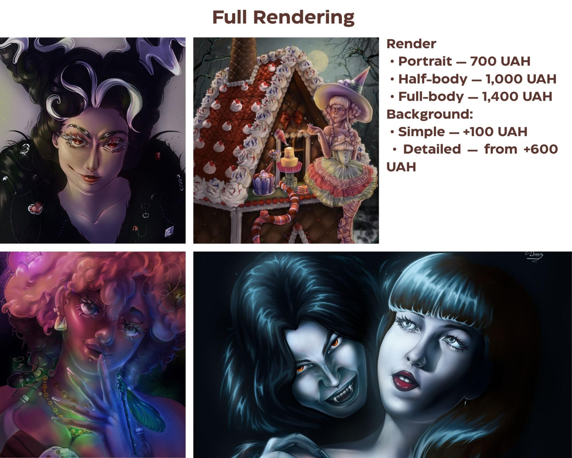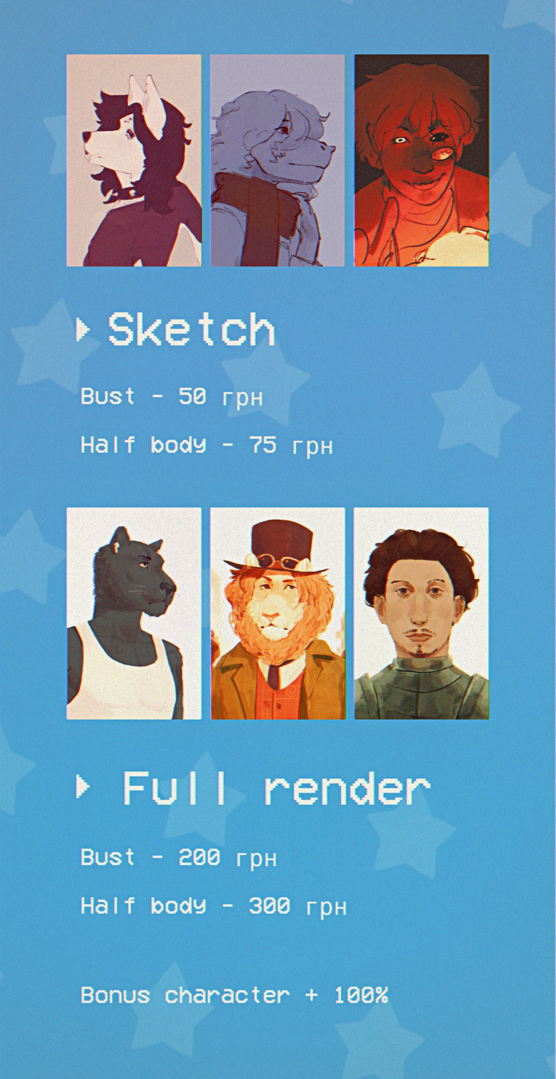Portrait 50 UAH / halfbody 75 UAH per character