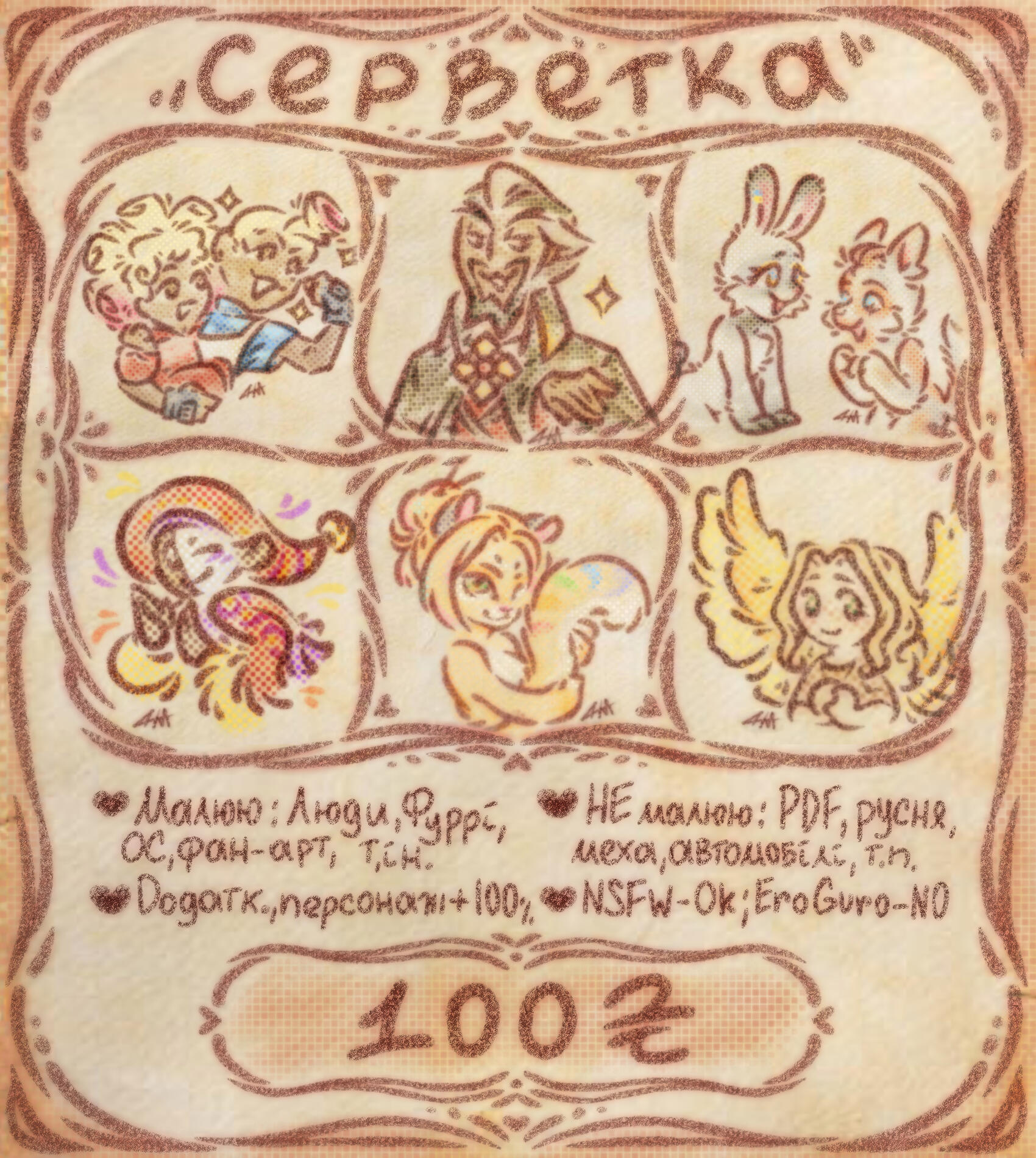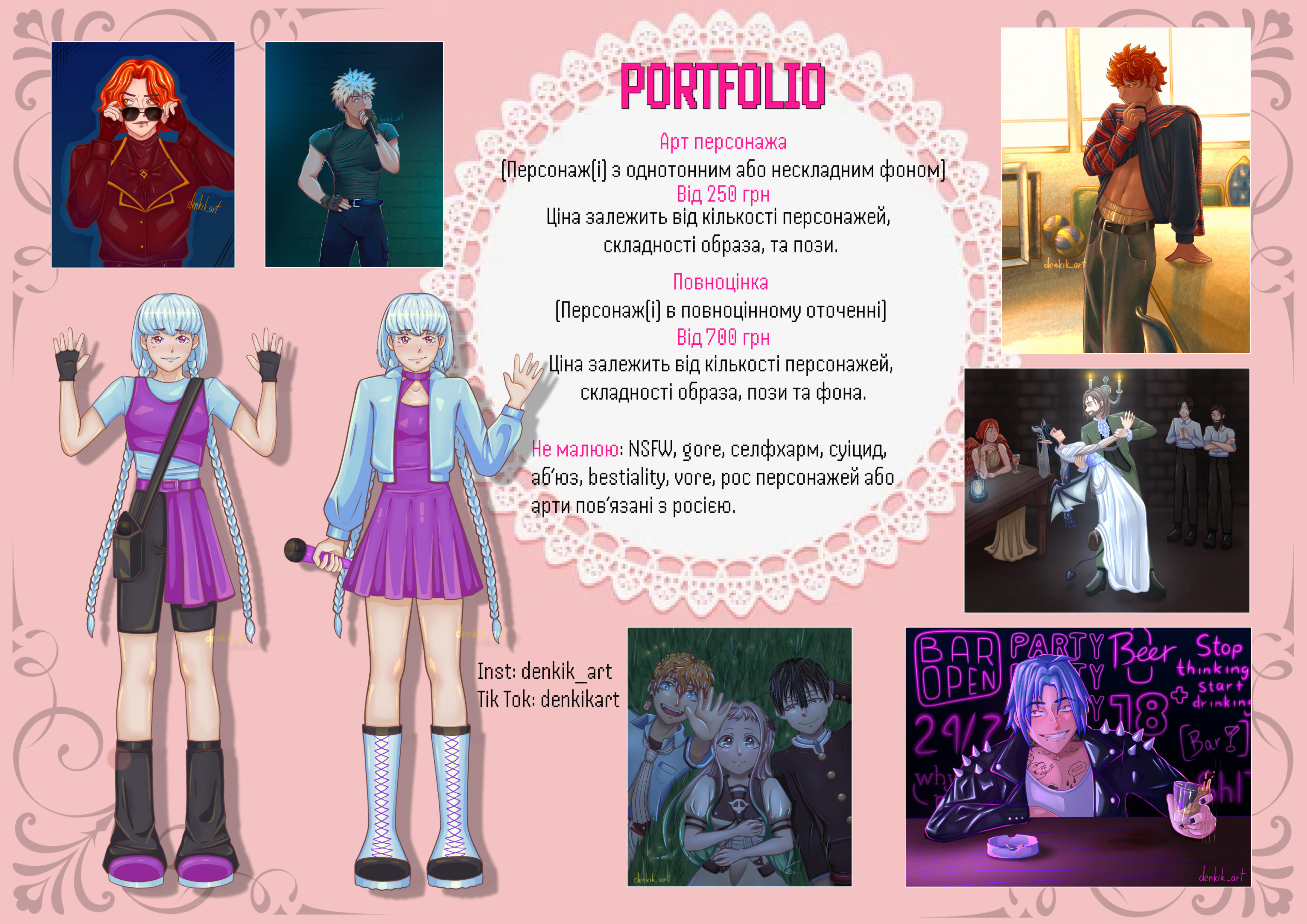 Portrait 100 UAH / halfbody 200 UAH/ fullbody 350 UAH