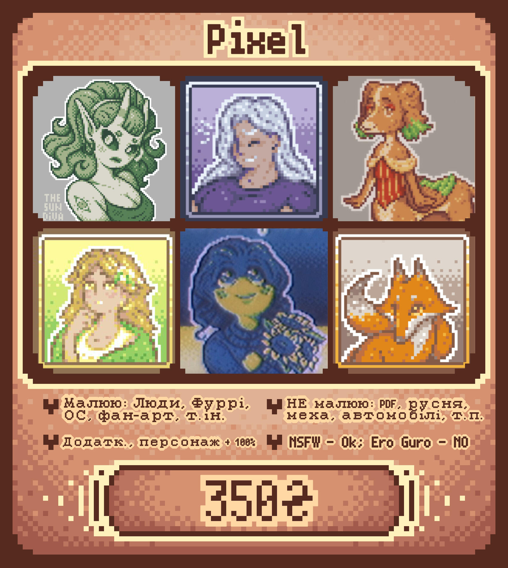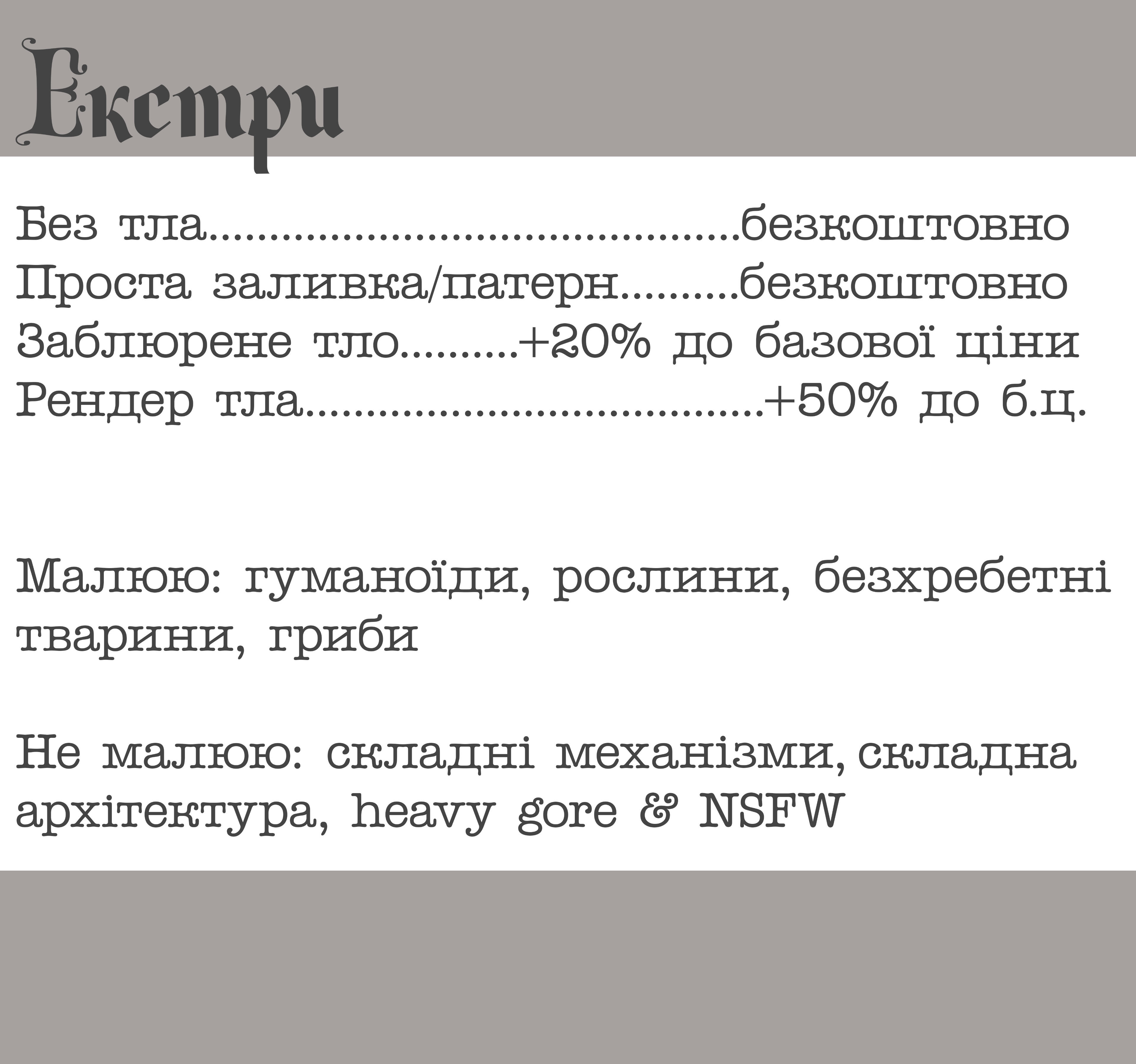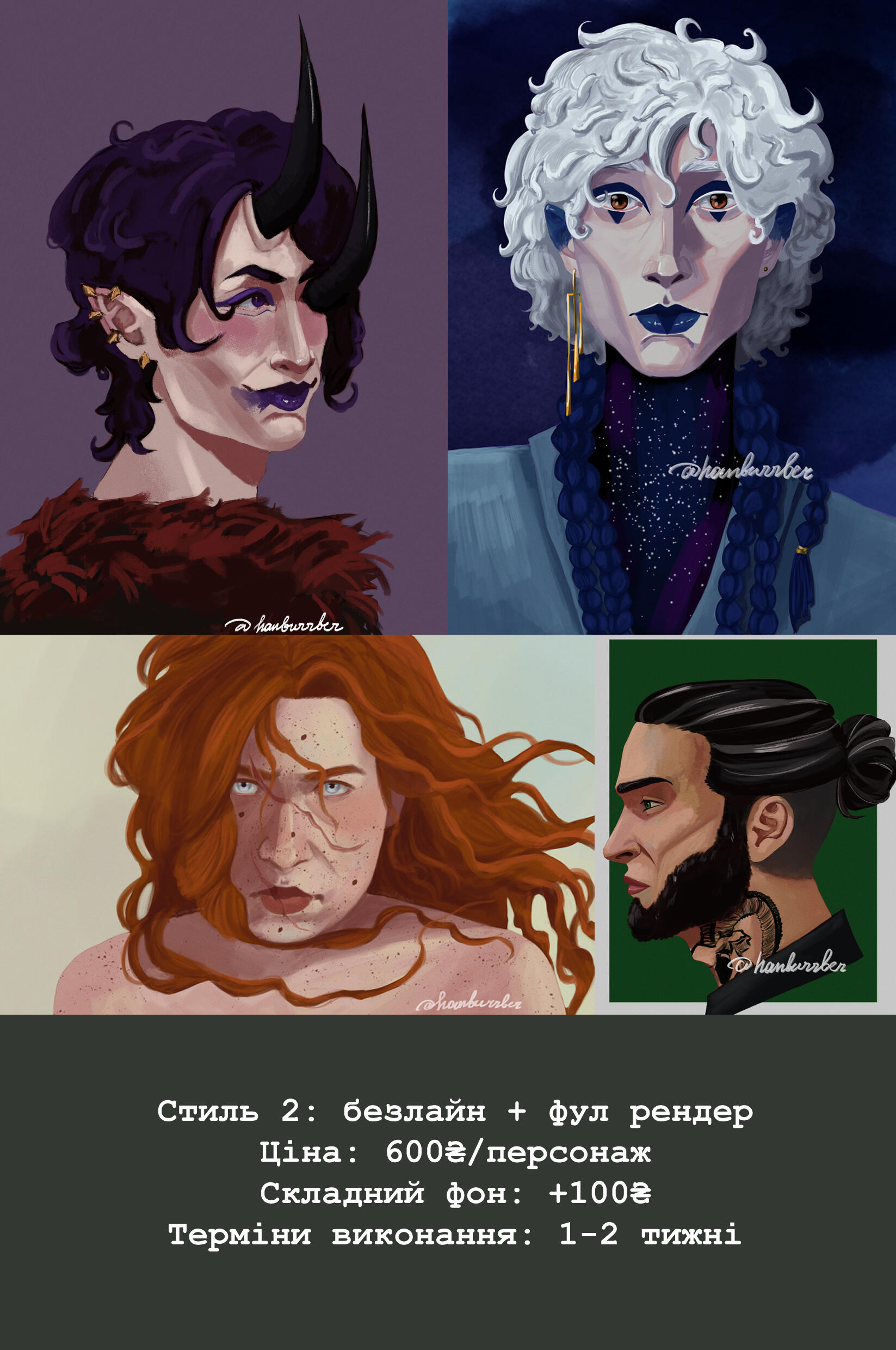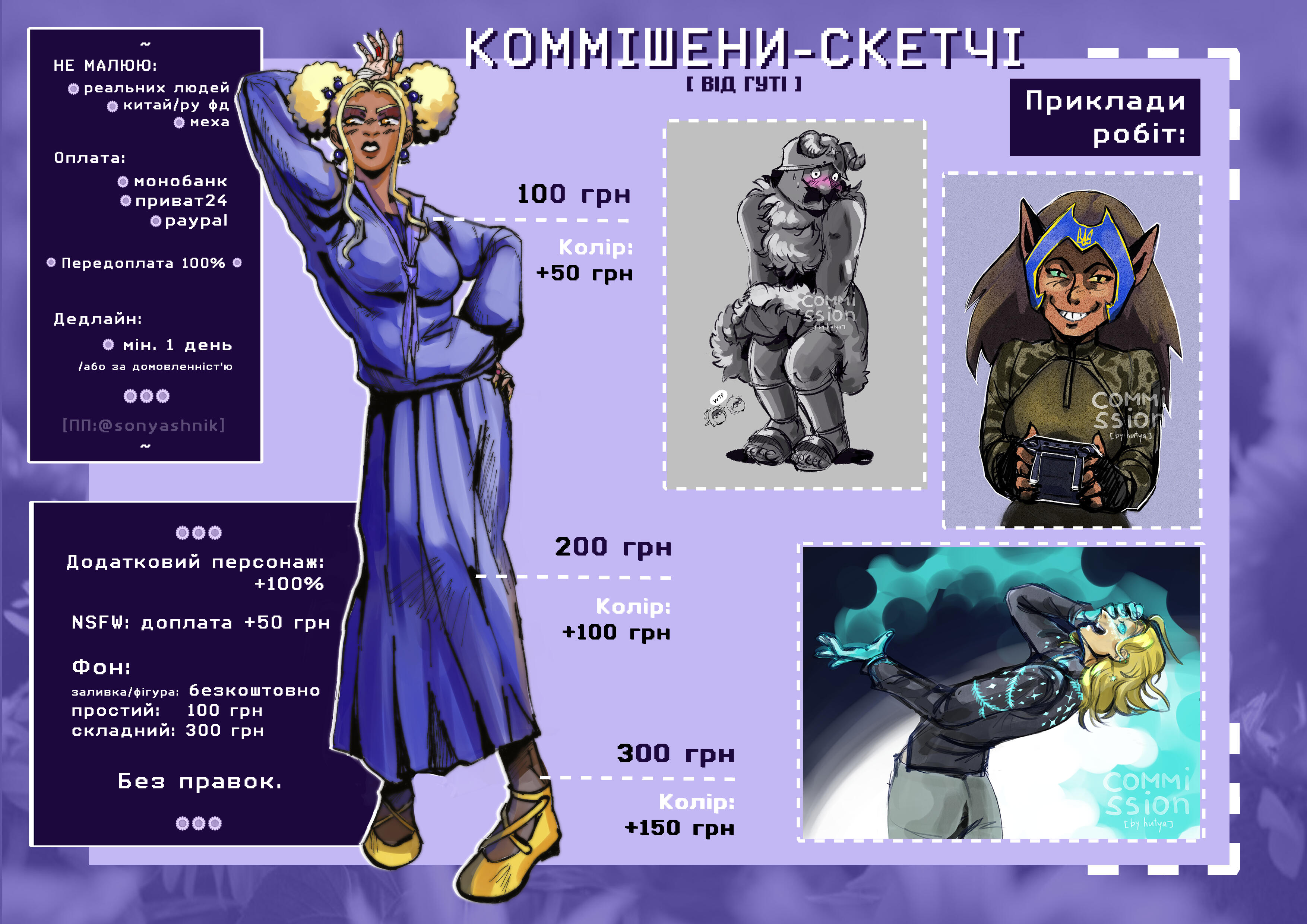 Portrait 300 UAH / halfbody 600 UAH/ fullbody 900 UAH