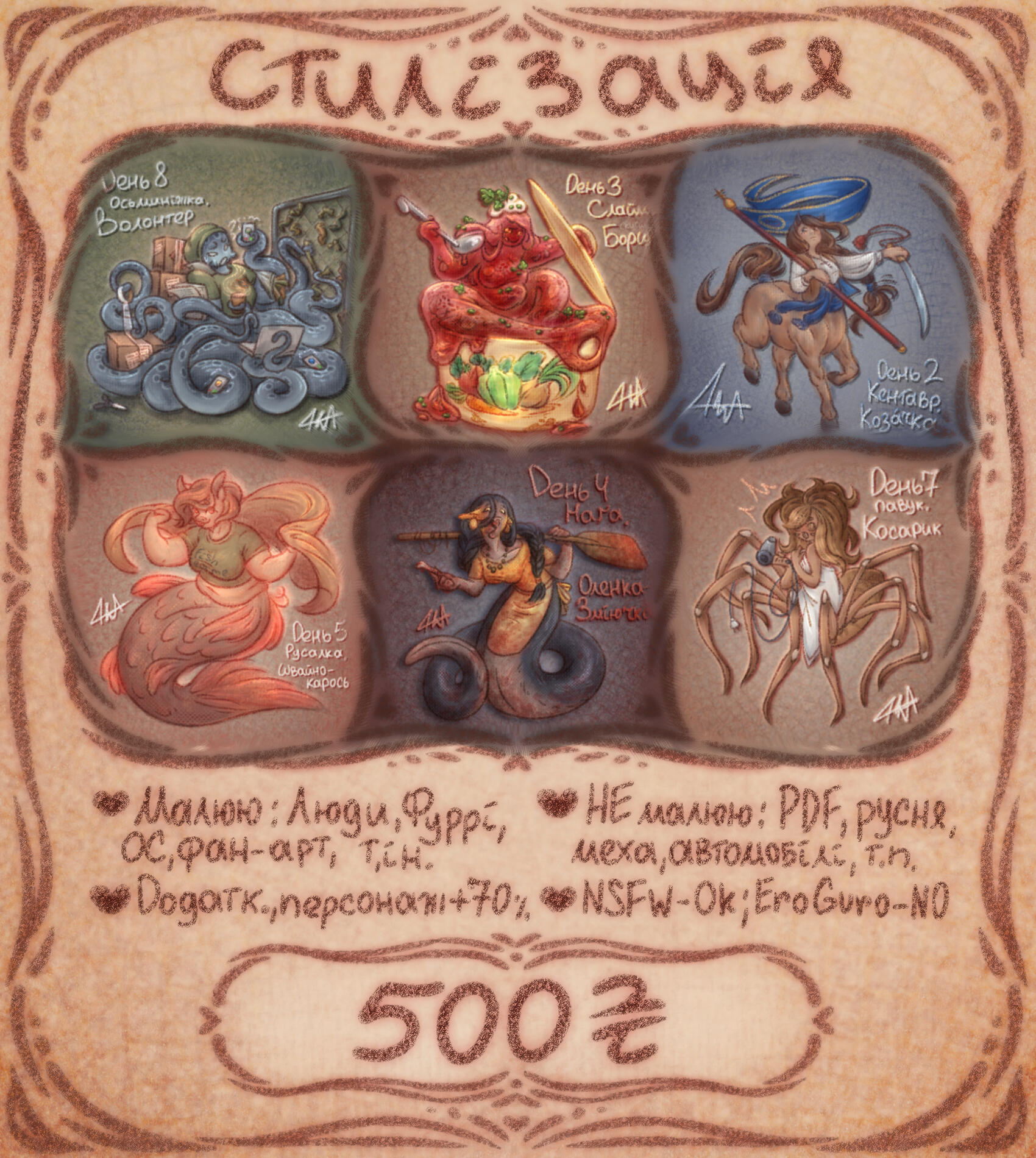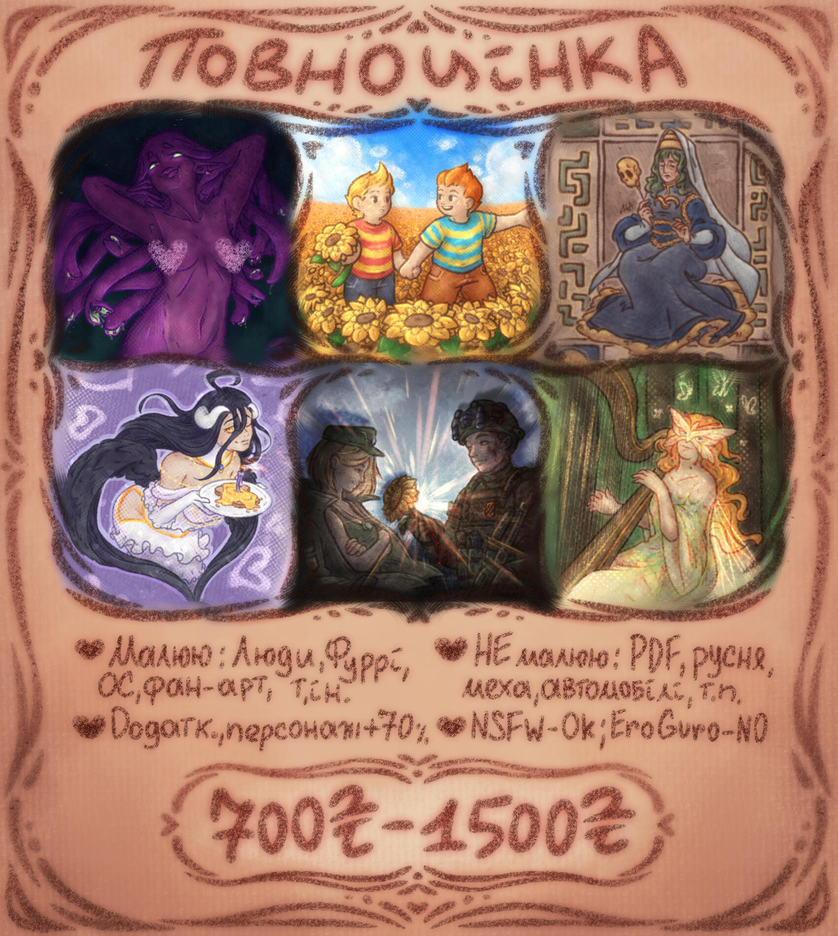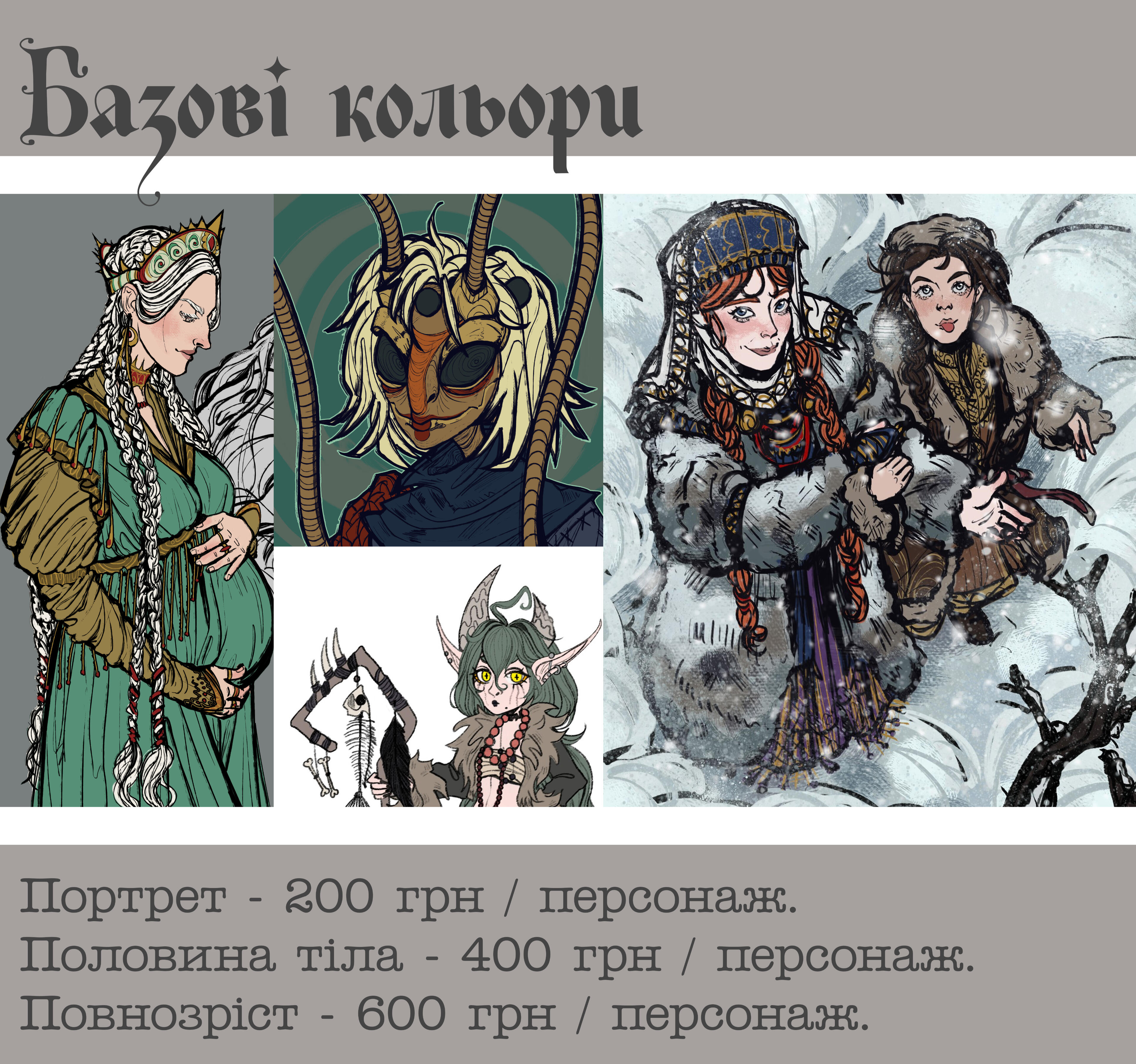 Portrait 70 UAH / halfbody 350 UAH per character