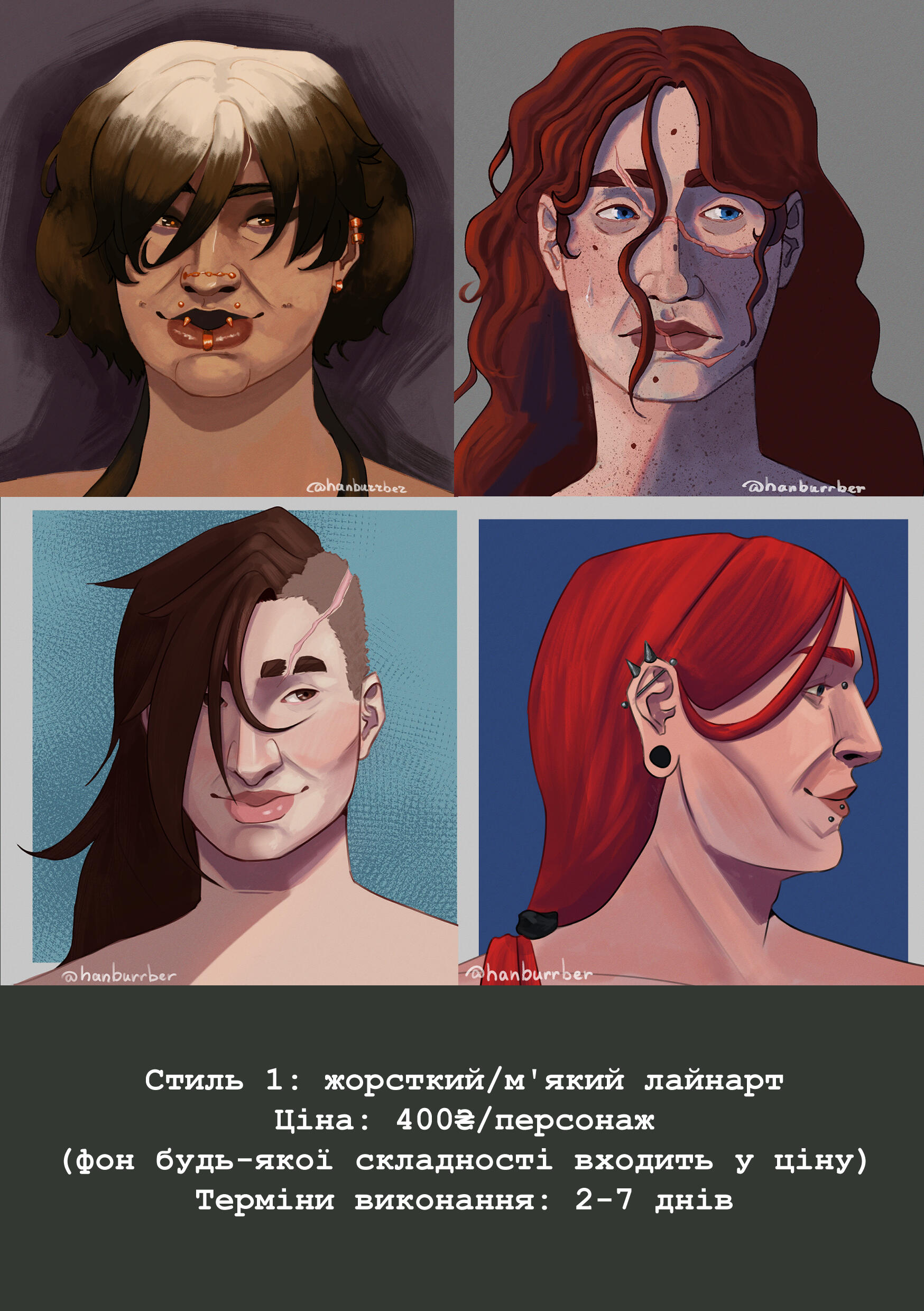 Portrait 200 UAH / halfbody 300 UAH per character